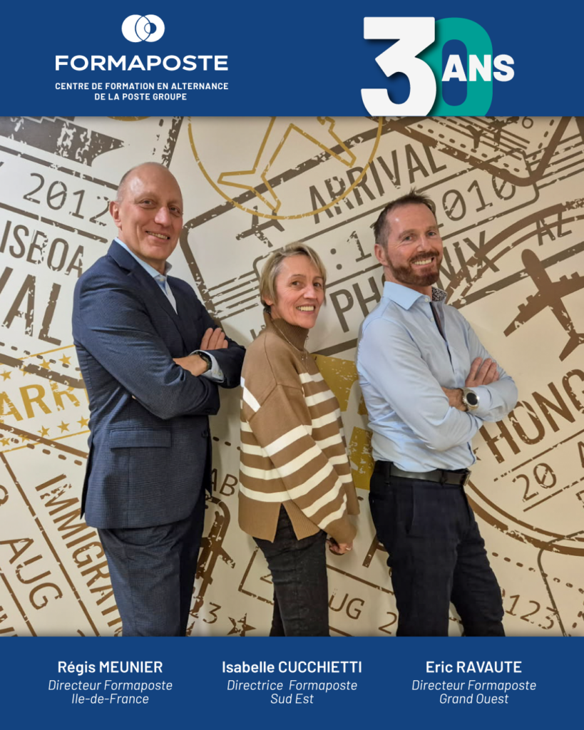 Régis Meunier, Directeur Formaposte Île-de-France – Isabelle Cucchietti, Directrice Formaposte Sud Est – Éric Ravaute, Directeur Formaposte Grand Ouest